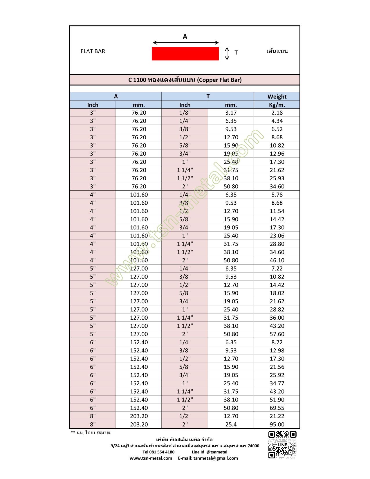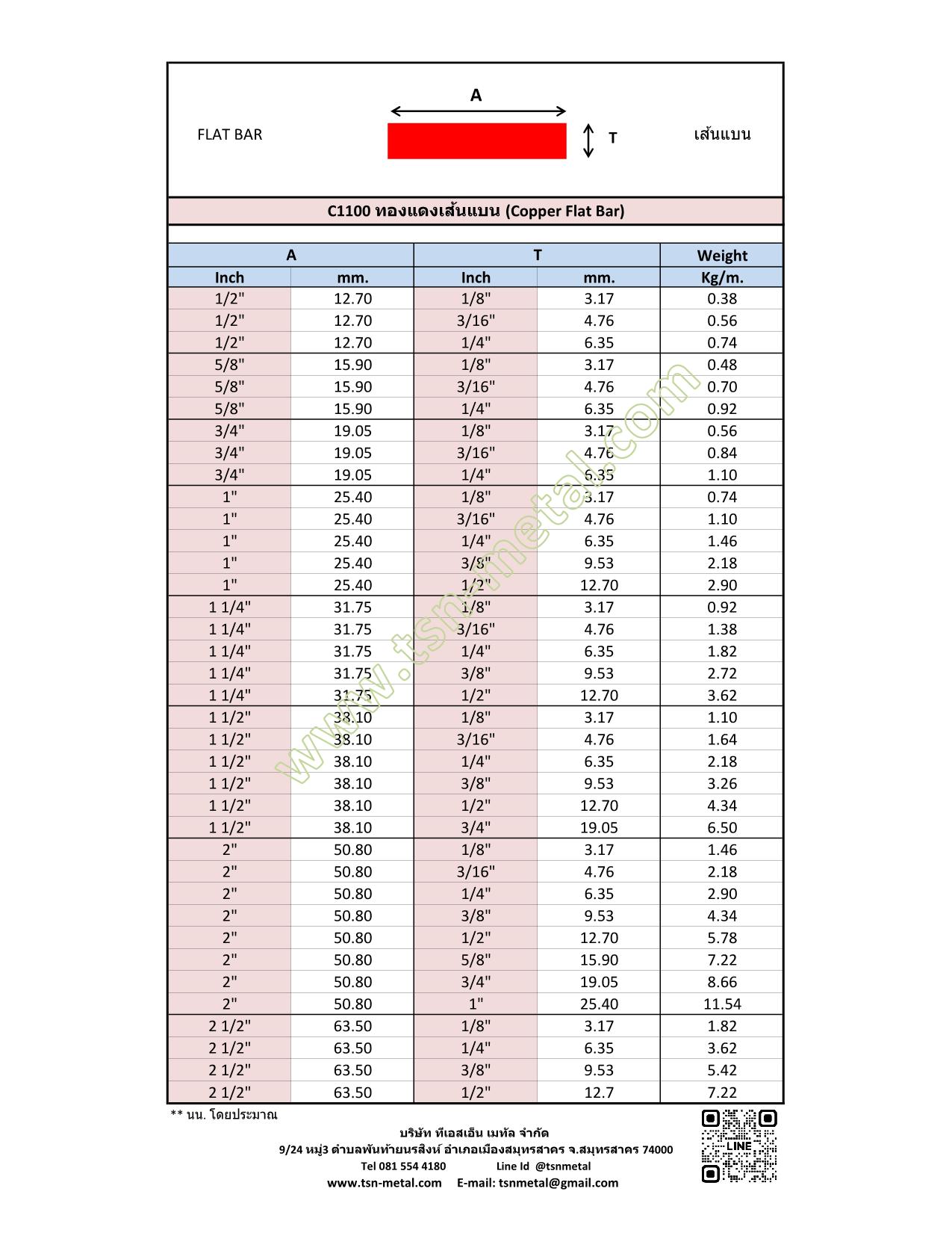 ทางบริษัทจำหน่ายทองแดงแผ่น grade JIS H3100 C1220ตามขนาดดังนี้ ทองแดงแผ่น ขนาด เบอร์ (Oz.) หนา (มิล.) น้ำหนัก (กก.) 14”x48” 3 0.109 0.40 14”x48” 6 0....